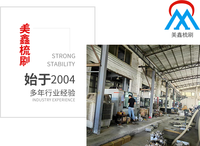 江門市新會區美鑫梳刷制造有限公司位于廣東省江門市新會區司前鎮,始發于1988年,本公司致力開發,設計,維修,銷售一體的高新技術企業廠家,主要產品有2-7軸制刷機,鉆孔植毛一體機,多功能一體機及平毛,高速植毛機,切毛機,開絨機等設備,產品廣泛用于各種日用刷、化妝行業、工業,環衛行業,電子行業等等...
